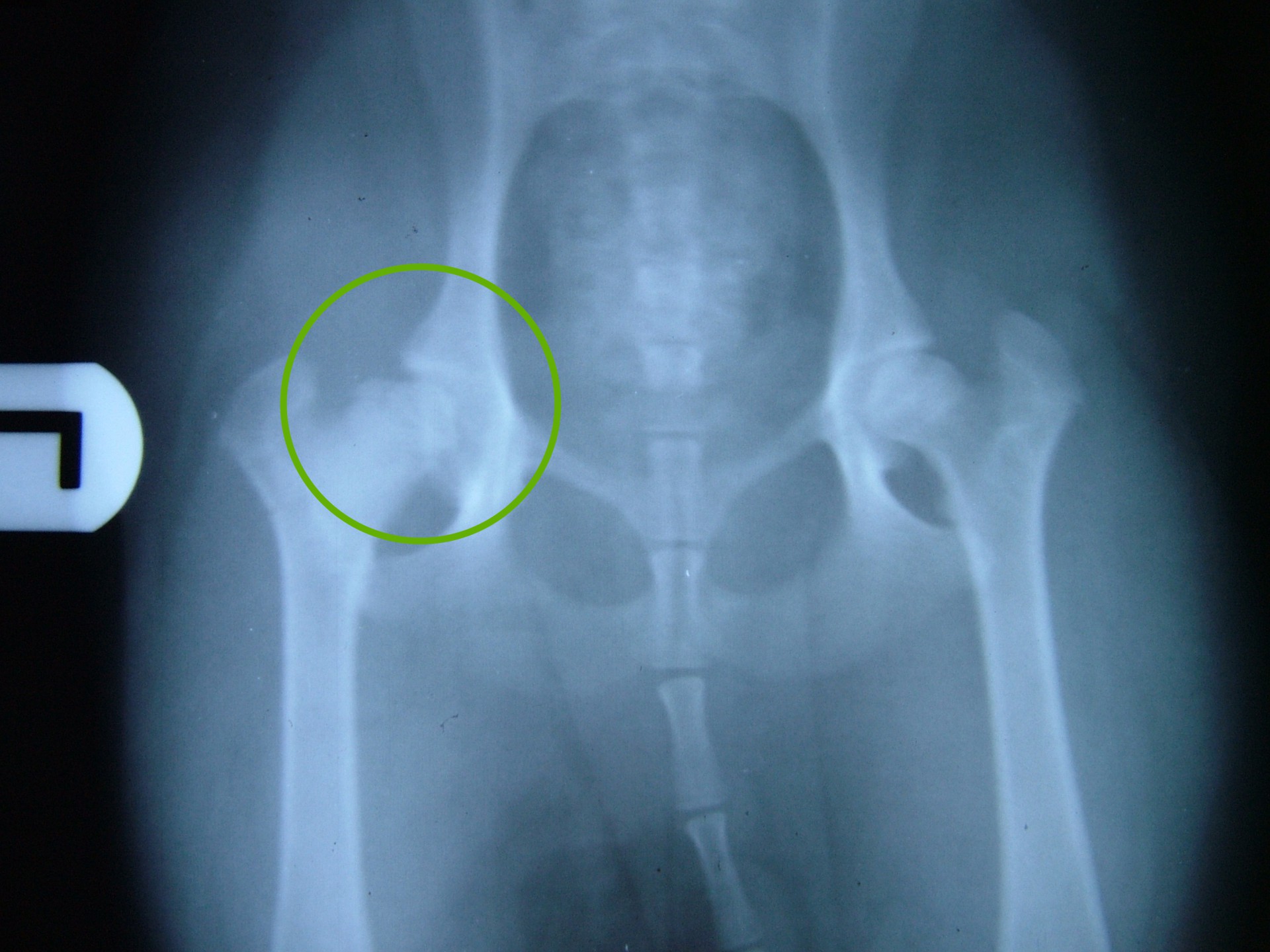 Az 1 év alatti kutyákban a hátsó lábon jelentkező enyhe fokú sántaság az első tünet, mellyel a tulajdonos általában az állatorvoshoz fordul. A csípőízület passzív mozgatására, rotálására az állat fájdalmat jelez. Az első tünetek megjelenésekor végzett klinikai vizsgálattal a csípőízületi fájdalom általában már a betegség gyanúját felkelti, ezért az ízület röntgen vizsgálatát is elvégezzük. Sok esetben azonban a klinikai tünetek megjelenése és a röntgen tünetek megjelenése nem esik egybe, ezért az enyhe fokú sántasággal járó korai szakaszban a betegség nem egyértelműen diagnosztizálható.