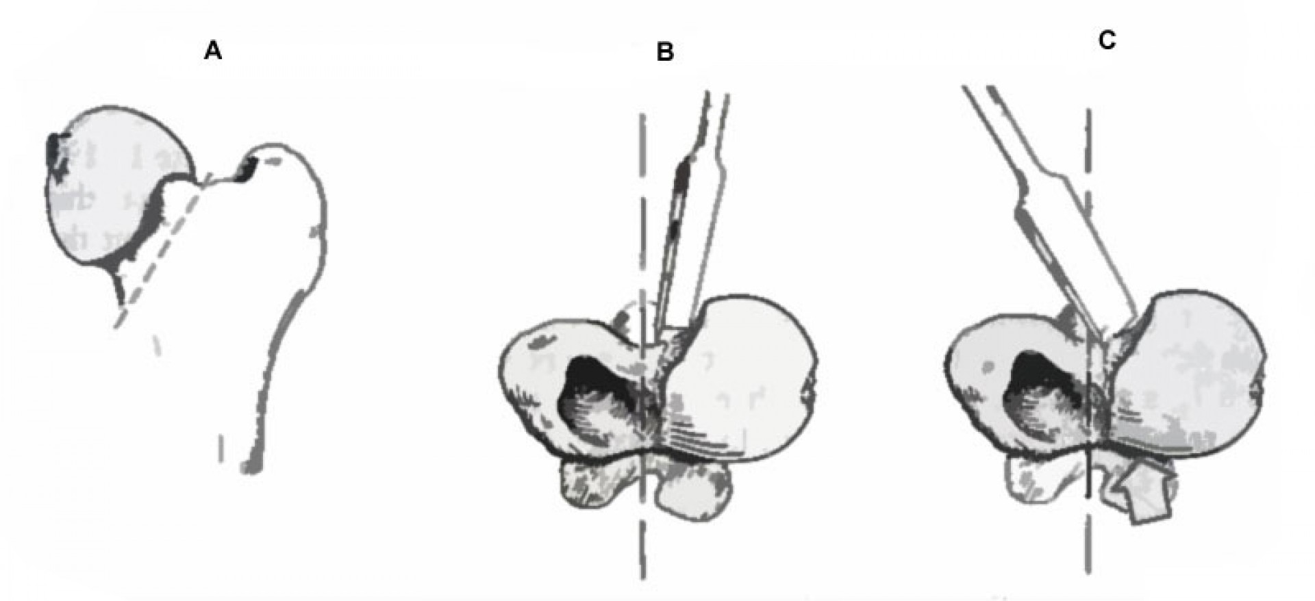 A röntgen felvétellel egyértelműen diagnosztizált betegség műtéti ellátást igényel. A beavatkozás során az elhalt combcsontfejet eltávolítjuk, megszűntetve az ízületi fájdalmat. A gyógyulási folyamat során a csípőízület helyén egy laza kötőszövetes kapcsolat alakul ki (álízület, pseudoarticulatio), mely fájdalommentes mozgást biztosít a medencecsont és a combcsont között.